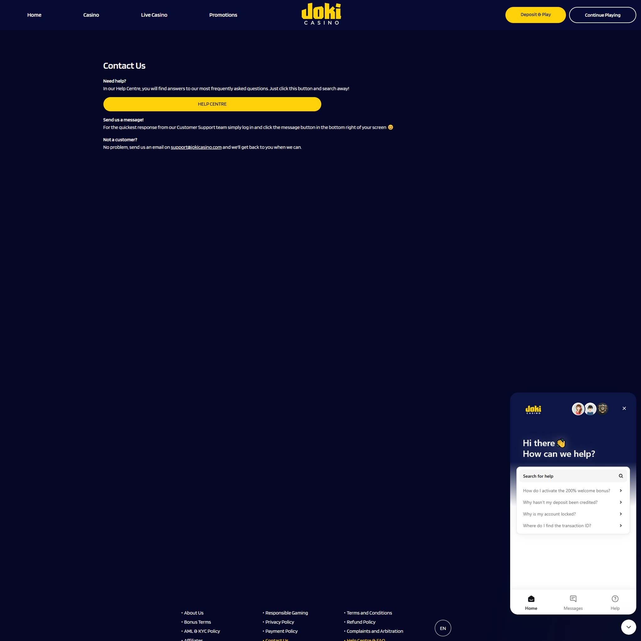 | Direct link to a help organization 👉 | Casino users can click on a direct link to a gambling safety organization on-site at Joki |