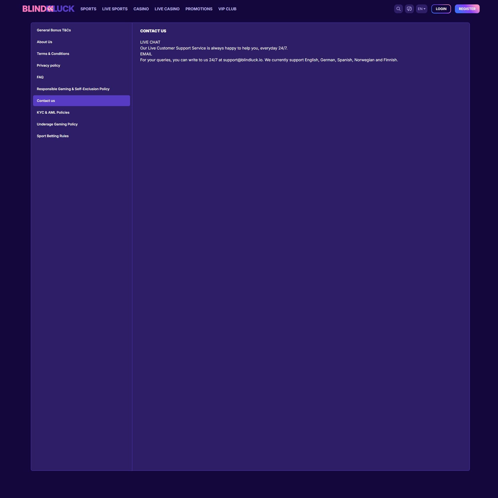 | Self-exclusion 👉 | Complete self-exclusion is constantly available for Blindluck users |