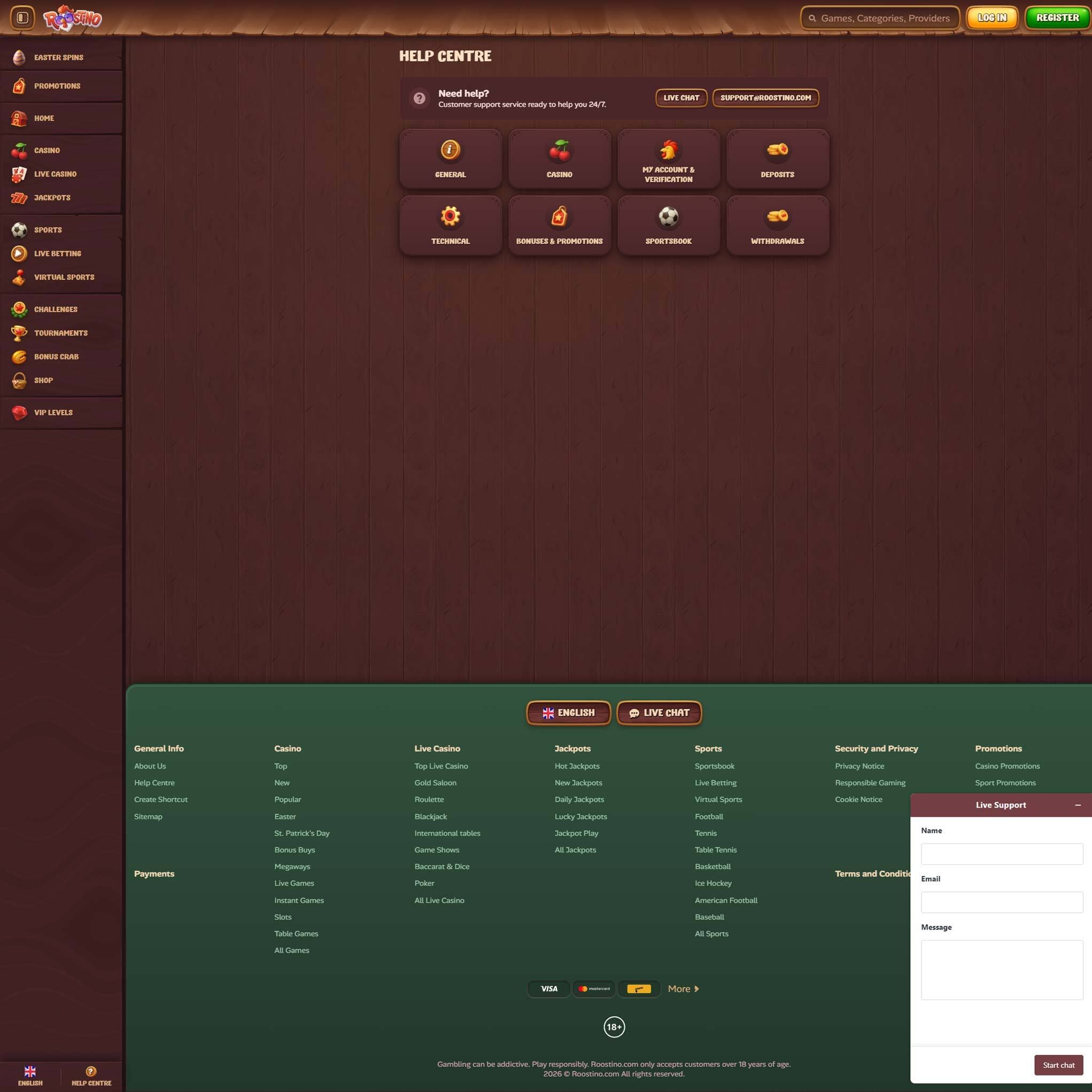 | 🎙️ Live casino | Roostino Casino offers live casino games with real-time professional broadcasts from a game studio. |