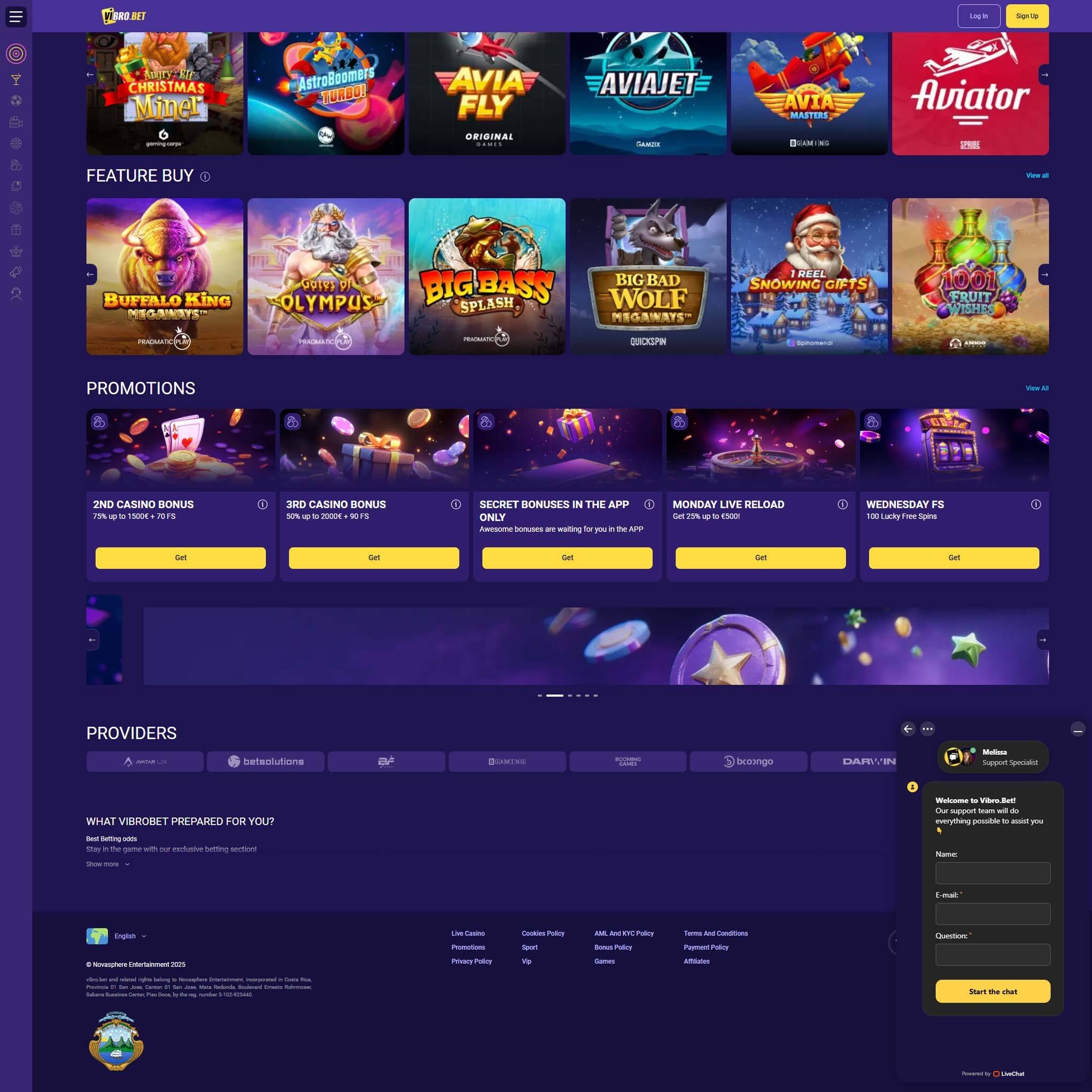 Vibrobet is an internet casino accredited by Costa Rica under licence number 3-102-937278 LTDA 2025. This casino site was created in 2025. Indeed, you're able to grab casino bonuses at Vibrobet. Check the valid casino deals down below.