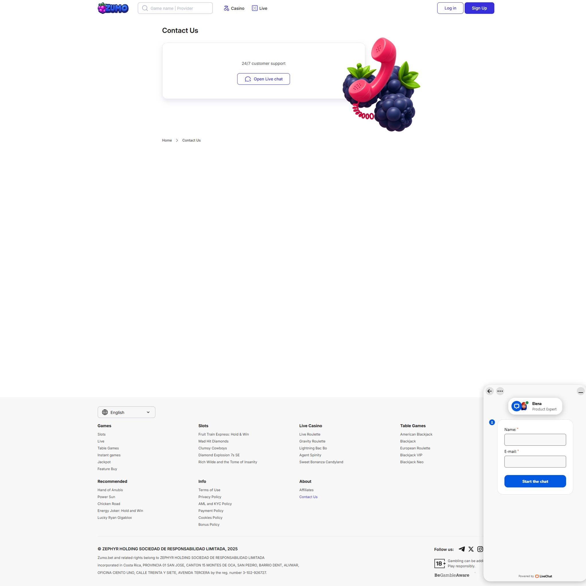 | 🎙️ Live casino | Zumobet has live casino games with totally real-time broadcasts from a live casino studio. |